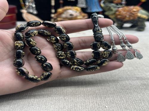 فاتوران اسود محشر ورق الذهب ٨ مل ٣٣ خرزه
