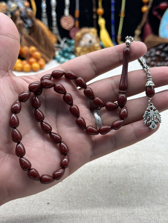 كهرمان عطش شغل عراقي قديم قص صنوبري ٤٣ جرام كركوشه فضه مطليه ذهب لفض الجلاله ٩ مل ٣٣ خرزه