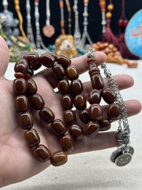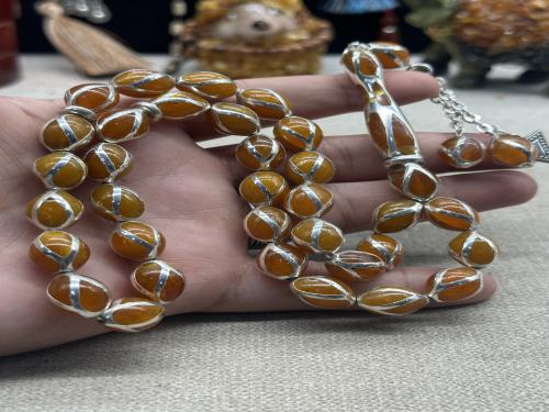 كهرمام بولندي قديم كسر ملبس فضه بالكامل ١٠ مل ٣٣ خرزه ٦٣ جرام