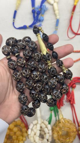مسباح من ثمرة الدوم منقوش بالكامل ٣٣ خرزه ١٥ مل