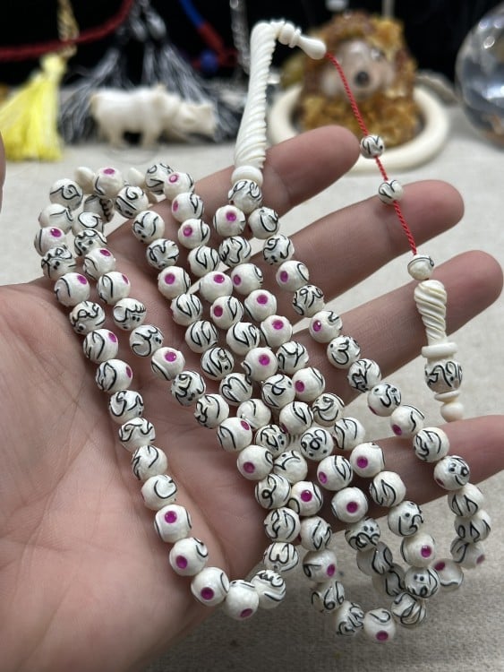 مسباح عظم جمل منقوش يدوي بالكامل 11 مل