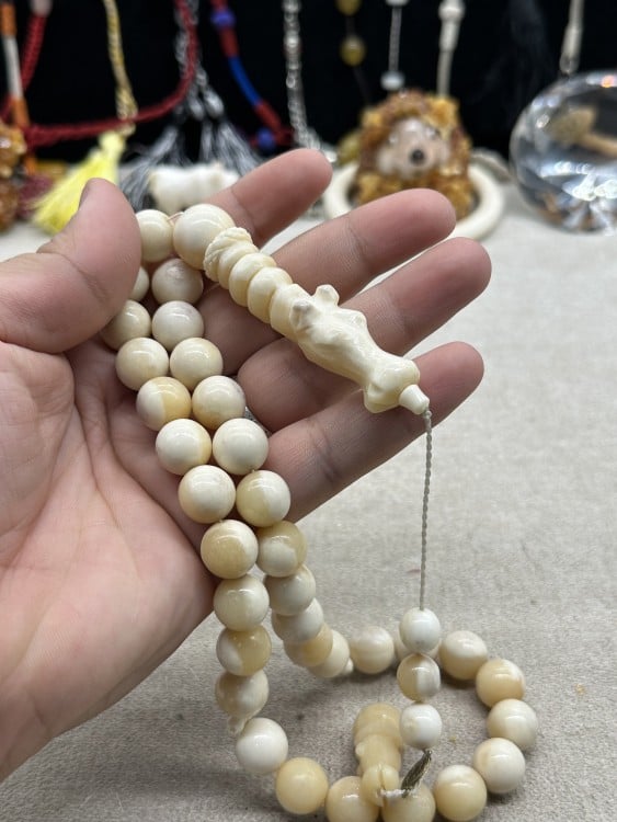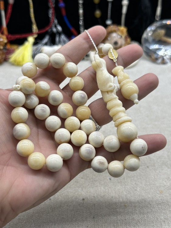 تراب عاج ملبس فضه وكهرمان ٣٣ خرزه ٨ ملي
