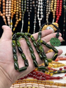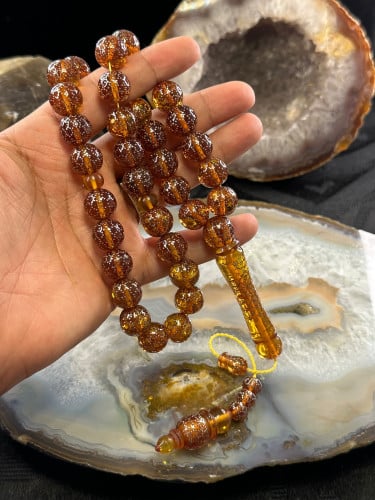 عاج الفيل مطعم فضه وكهرمان ٩ مل ٤٣ جرام ٣٣ خرزه