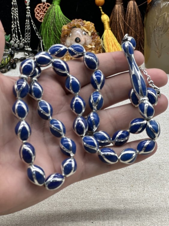 خراطه الكعبه نوادر السبح الخامه ترسه بالفضه بالكامل ٤٥ جرام ٨ مل ٣٣ خرزه