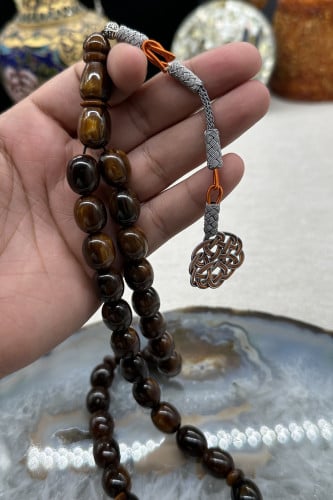 عاج الفيل مطعم فضه وكهرمان ٨ مل ٣٣ خرزه ٣٨ جرام