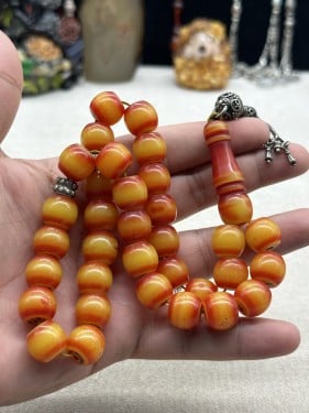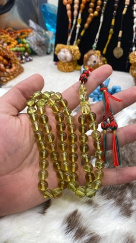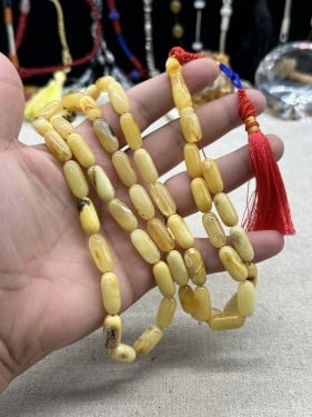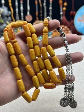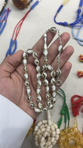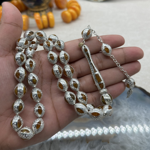 تراب عاج ملبس فضه وكهرمان ٣٣ خرزه ٨ ملي
