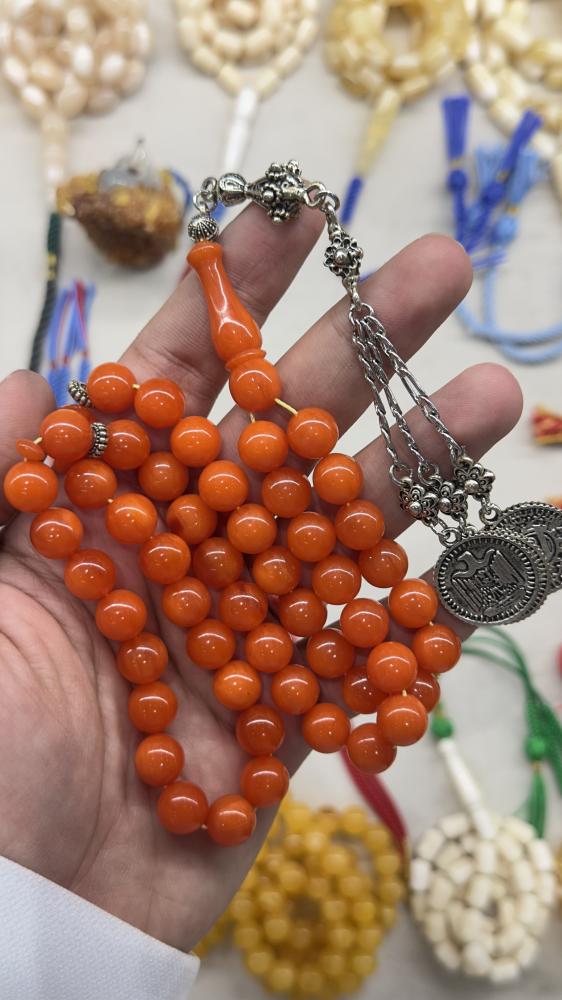 كهرمان بلطيقي صاافي قص صنوبري ٤٩ خرزه ٩ مل ٥٧ جرام