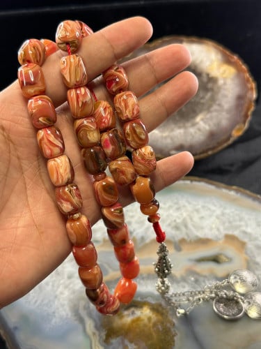 كهرمان روسي شفافيه حمرا ٥٩ جرام ٣٣ خرزه ١٢ مل