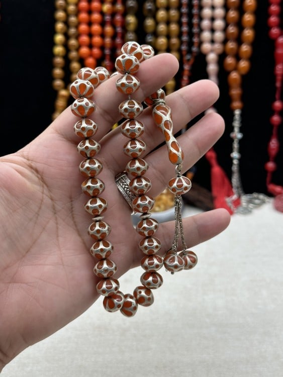 عاج مع كهرمان قص ولا اروع 45 خرزه ١٢ ونص مل ٨٦ جرام