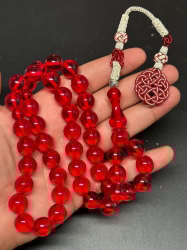 يسر بلدي بحر احمر مطعم لازورد ومرجان طبيعي ومطر فضه فخامه على شكل كف ٣٣ خرزه ١٤ مل