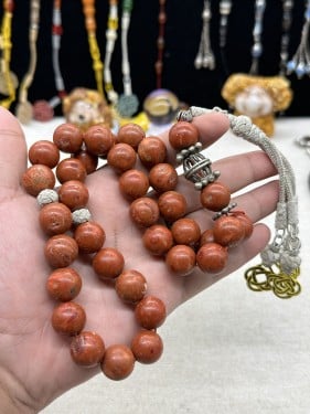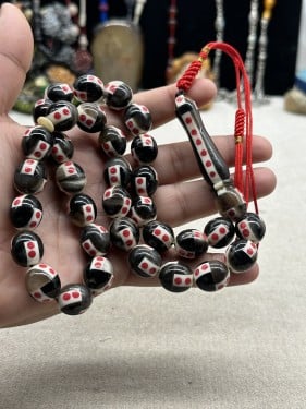 كهرمان منقوش ٥٥ جرام ٣٣ خرزه ١٣ ملي