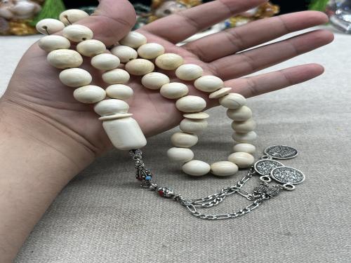 مسباح فضه انتيك قديم جدا كركوشه منحوت ( الحمد لله ) وزن ٣٣ جرام ٩ مل ٣٣ خرزه قديم جدا قص دائري